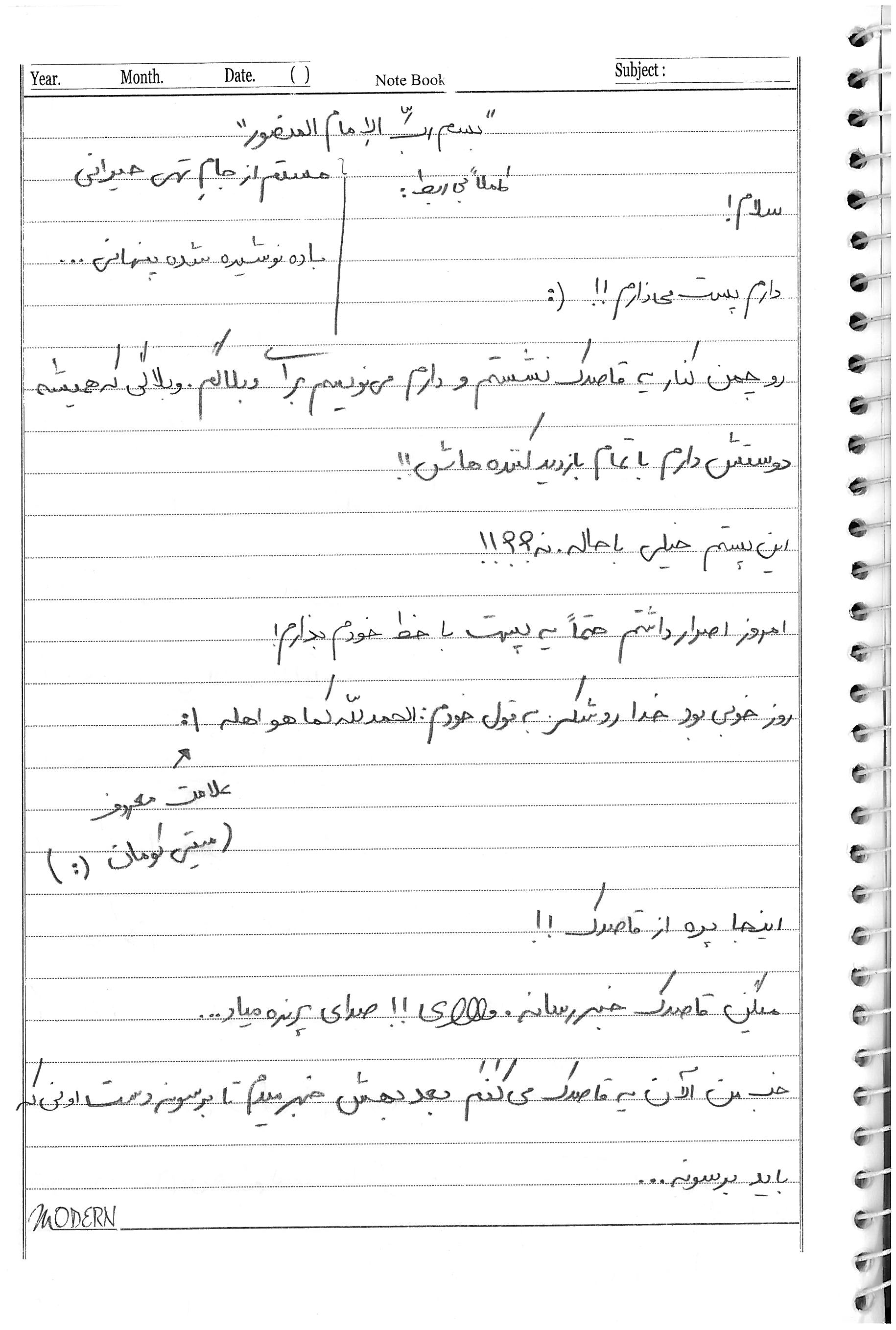 سلام جالب بود این پست شما چه دست خط قشنگی دارید و چه مطالب قشنگتری خوش به حال امام زمان (عج) که شیعیان خوبی مثل شما داره پس چرا نمیاد آقا راستی در مورد نظرتون تو وبلاگم جواب دادم لطفا تشریف بیارید و بخوانید راستی ... حالا چرا حسنی؟؟؟